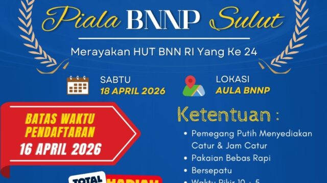 Hadiah Puluhan Juta Rupiah, BNNP Sulut Gelar Turnamen Catur Rayakan HUT BNN RI ke-24
