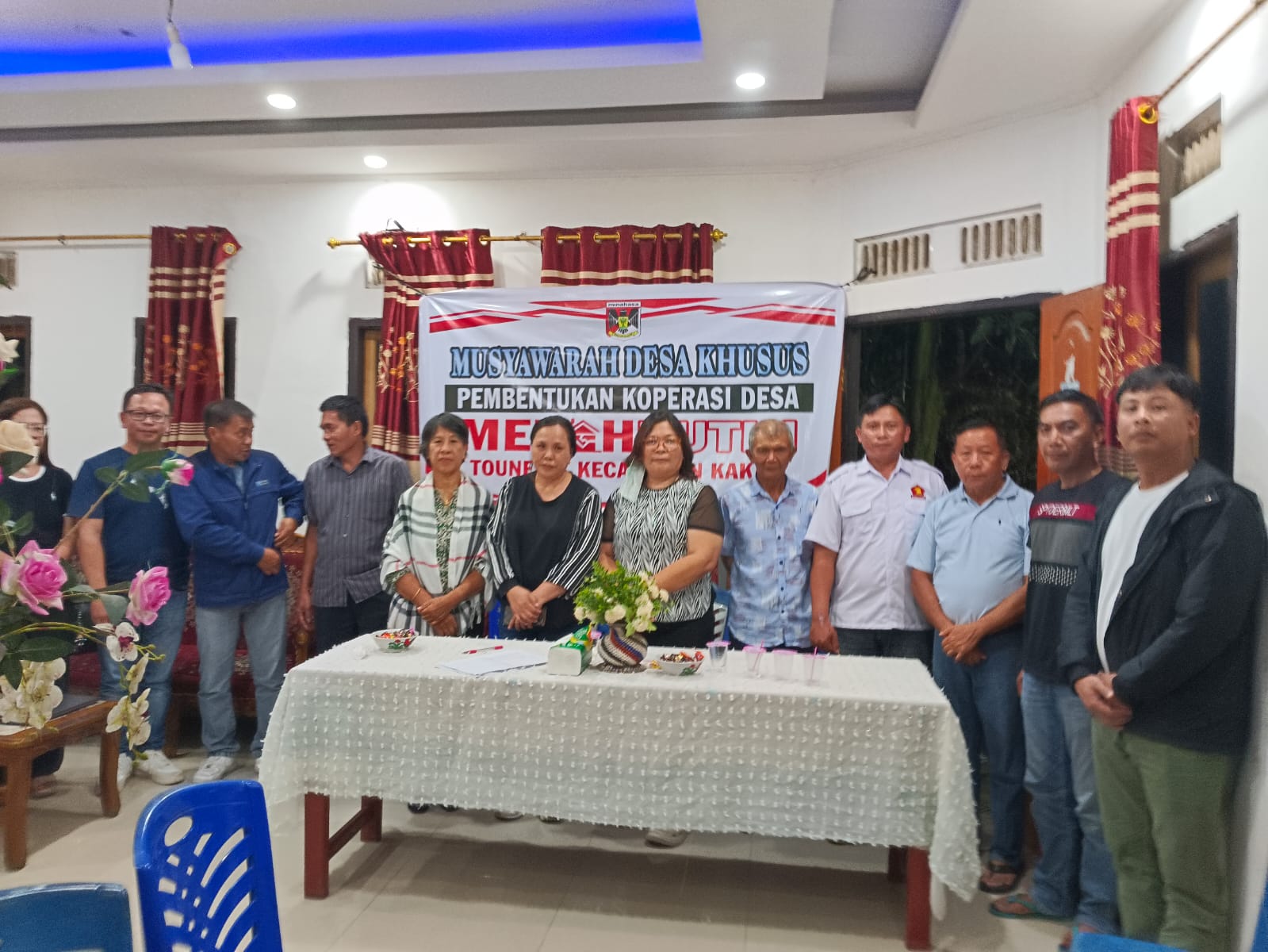Pemerintah Desa (Pemdes) Tounelety Kecamatan Kakas, bersama Badan Permusyawaratan Desa (BPD), usai menggelar Musyawarah Desa Khusus Pembentukan Koperasi (KMP) Desa Merah Putih Jumat (30/05/25).