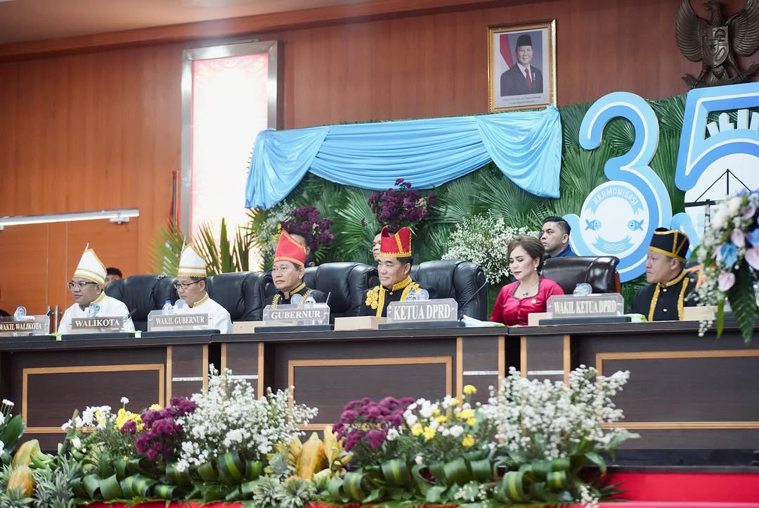 SEMUAUNTUKSATU.ID – Gubernur Sulawesi Utara Mayjen TNI (Purn) Yulius Selvanus (YSK), Wakil Gubernur Johannes Victor Mailangkay menghadiri rapat paripurna dalam rangka HUT Kota Bitung, di DPRD Bitung, Senin (13/10/2025).