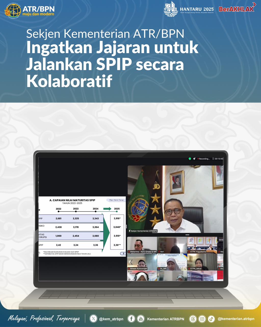 Kementerian ATR/BPN terus berupaya memperkuat implementasi SPIP melalui peningkatan kesadaran, pembinaan, dan evaluasi di setiap unit kerja.
