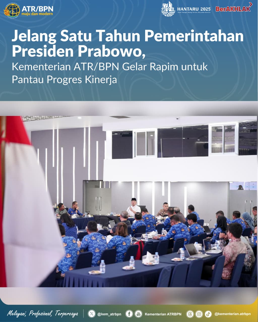 “Mohon untuk menjadi komitmen bersama. Supaya di Desember nanti target kita semua tercapai. Terima kasih atas partisipasinya, semoga rapat ini bermanfaat,” pungkas Menteri Nusron, yang hadir didampingi Wakil Menteri ATR/Wakil Kepala BPN, Ossy Dermawan.