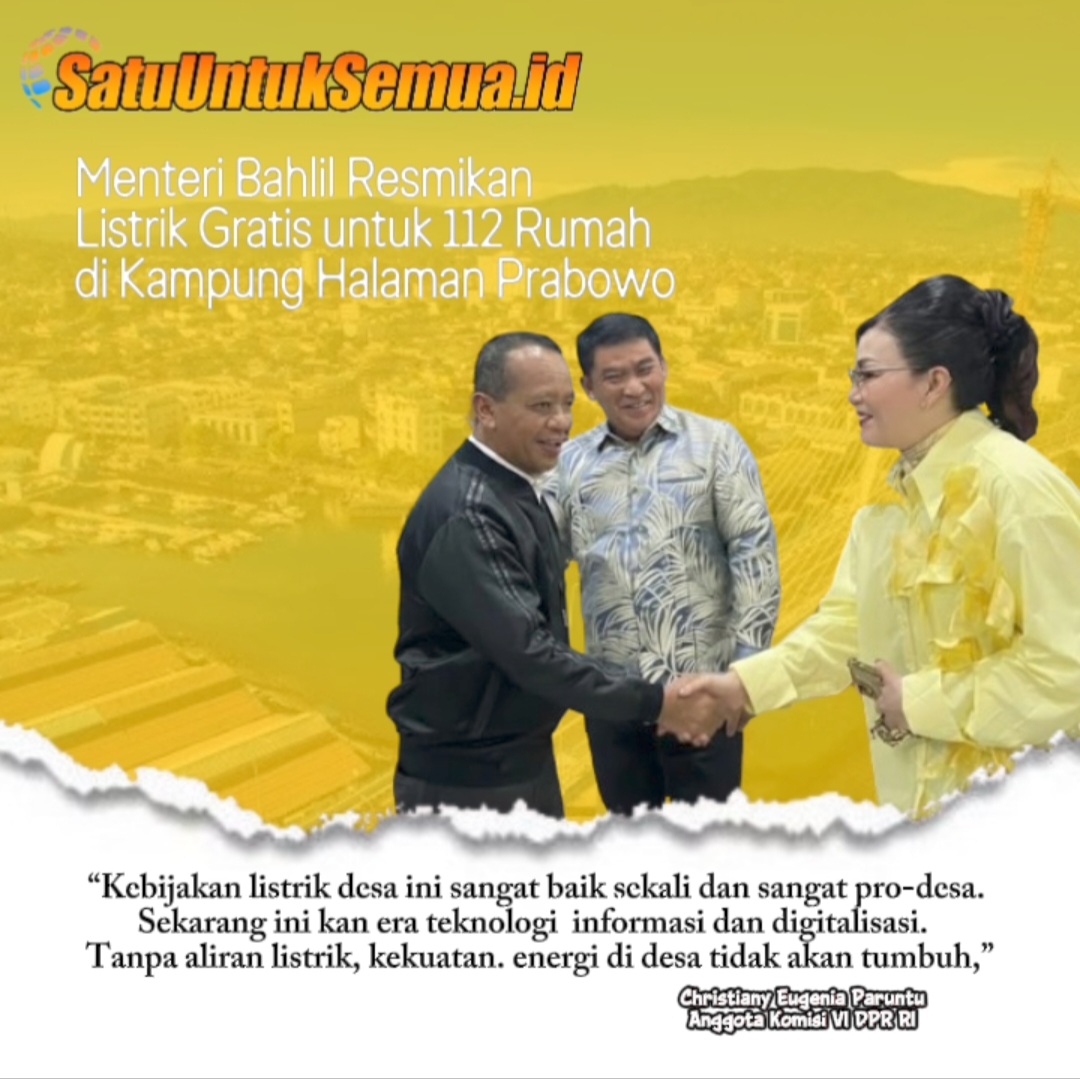 Peresmian listrik gratis untuk 112 rumah ini, menuai apresiasi dari Anggota Komisi VI DPR RI Christiany Eugenia Paruntu (CEP). Menurut CEP, langkah ini demi mewujudkan energi berkeadilan dan kemandirian energi nasional sebagaimana program Presiden dan Wakil Presiden yang tertuang dalam Asta Cita.