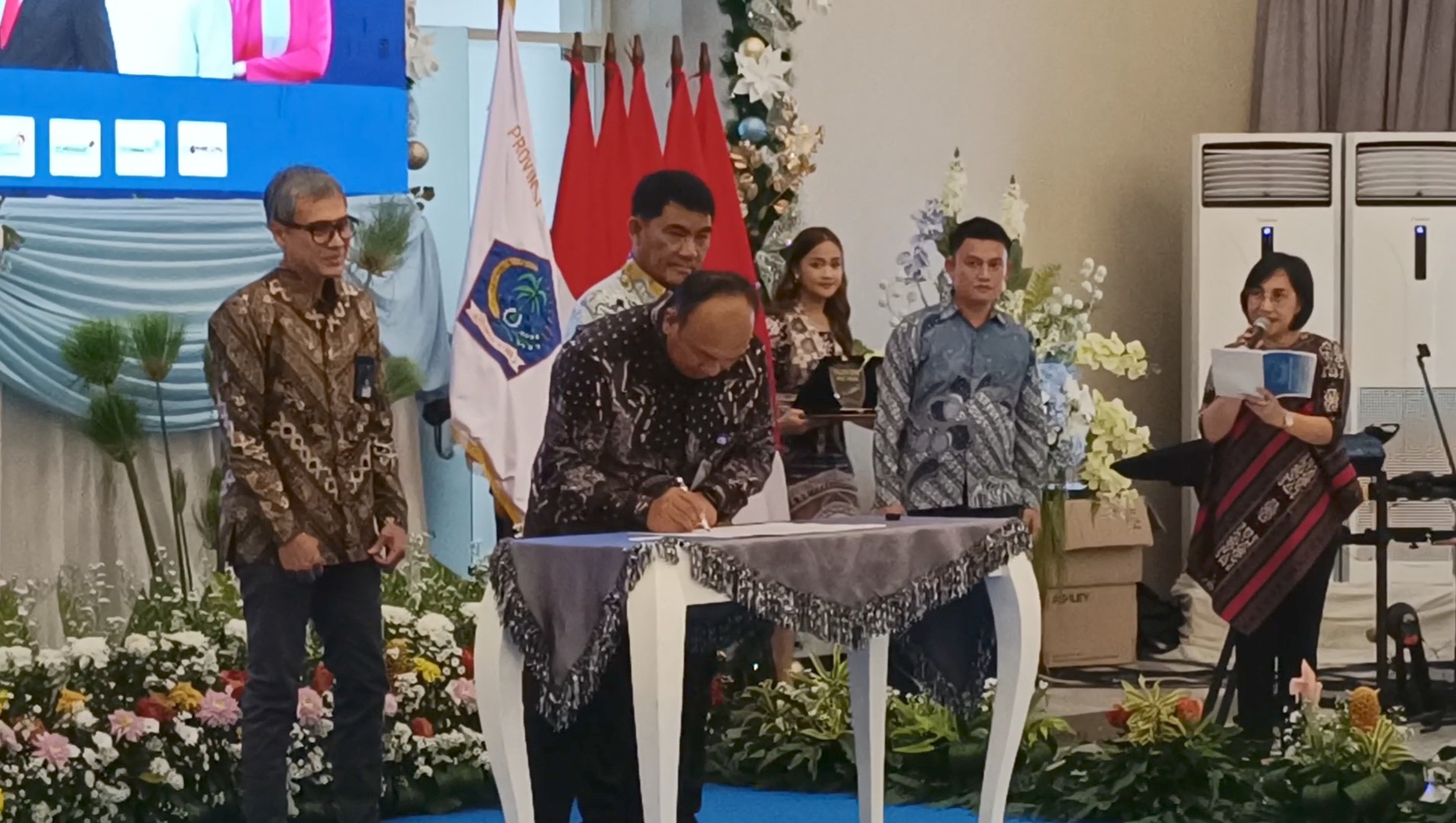 Bertempat di Wisma Negara Manado, Komdigi tengah melakukan penandatanganan kerja sama pembangunan infrastruktur digital dengan Pemerintah Provinsi (Pemprov) Sulawesi Utara (Sulut), Kamis (13/11/2025).