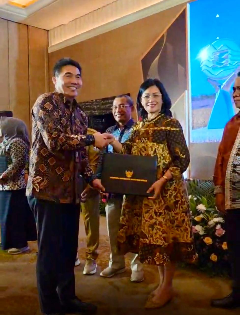 Bupati Minahasa Robby Dondokambey, SSi, MAP yang diwakili oleh Sekretaris Daerah Kabupaten Minahasa Dr. Lynda D. Watania, MM, MSi menerima kembali Piagam Penghargaan TPID Berprestasi 2025 dari Direktur Eksekutif Bank Indonesia Firman Mochtar, yang didampingi oleh Deputi Menteri Koordinator Perekonomian Ferry Irawan dan Direktur Jenderal Bina Pembangunan Daerah Kemendagri Restuardi Daud dalam Rapat Koordinasi Pusat dan Daerah TPID Tahun 2025 di Hotel Mulia Senayan Jakarta.