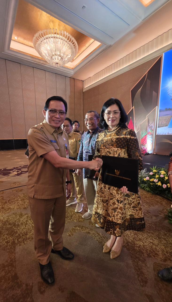 Bupati Minahasa Robby Dondokambey, SSi, MAP yang diwakili oleh Sekretaris Daerah Kabupaten Minahasa Dr. Lynda D. Watania, MM, MSi menerima kembali Piagam Penghargaan TPID Berprestasi 2025 dari Direktur Eksekutif Bank Indonesia Firman Mochtar, yang didampingi oleh Deputi Menteri Koordinator Perekonomian Ferry Irawan dan Direktur Jenderal Bina Pembangunan Daerah Kemendagri Restuardi Daud dalam Rapat Koordinasi Pusat dan Daerah TPID Tahun 2025 di Hotel Mulia Senayan Jakarta.