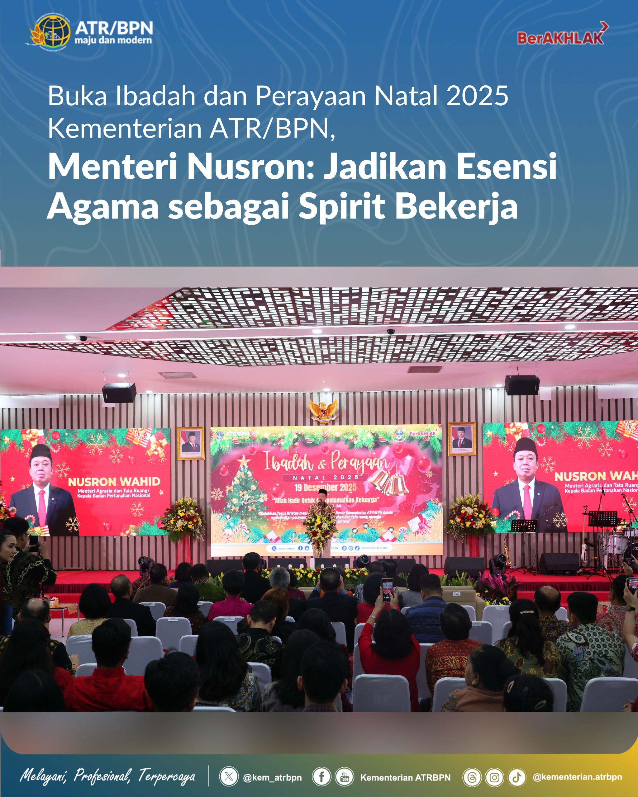 Buka Ibadah dan Perayaan Natal 2025 Kementerian ATR/BPN, Menteri Nusron: Jadikan Esensi Agama sebagai Spirit Bekerja