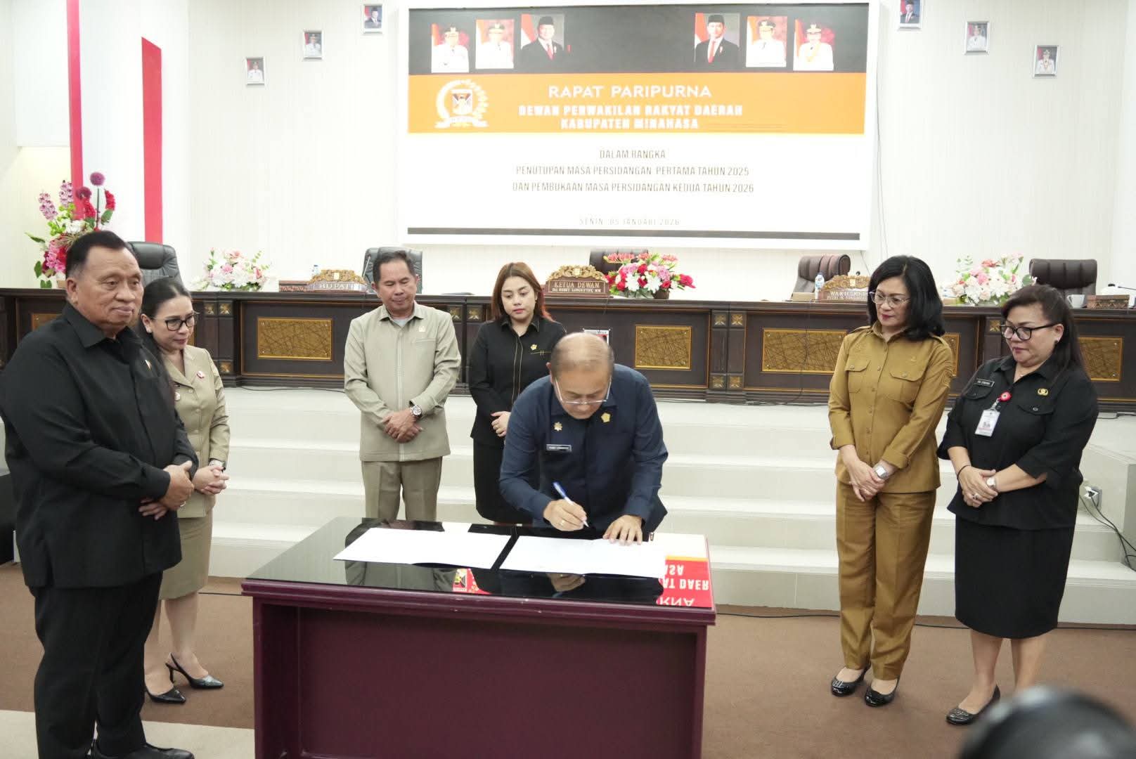 Rapat Paripurna DPRD Kabupaten Minahasa dalam rangka Penutupan Masa Persidangan Pertama Tahun 2025 dan Pembukaan Masa Persidangan Kedua Tahun 2026 digelar di Tondano , Senin (05/01/26).