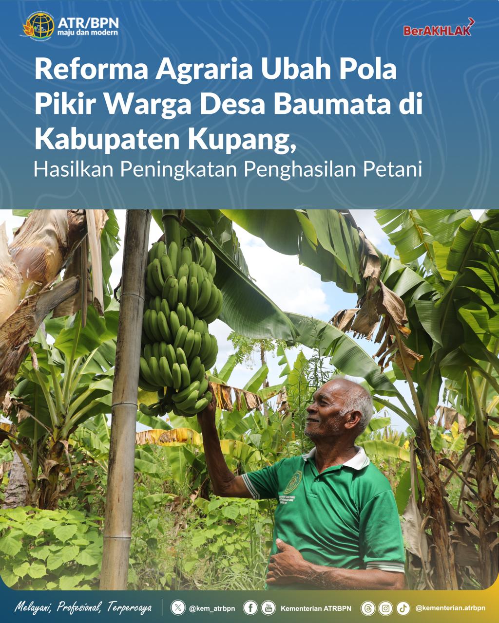 Kini, Desa Baumata menjadi salah satu bukti bahwa Reforma Agraria bukan hanya soal legalitas tanah, tetapi juga perubahan cara pandang masyarakat terhadap pemanfaatan ruang dan sumber daya. Dengan kepastian hukum, dukungan infrastruktur, dan pendampingan pemberdayaan, petani di desa ini mulai merasakan peningkatan penghasilan dan peluang ekonomi yang lebih terbuka.