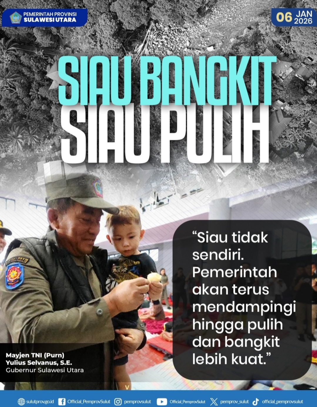Ini dikatakan Gubernur saat meninjau kondisi para korban banjir di pengungsian di Sitaro, Selasa 6 Januari 2026.