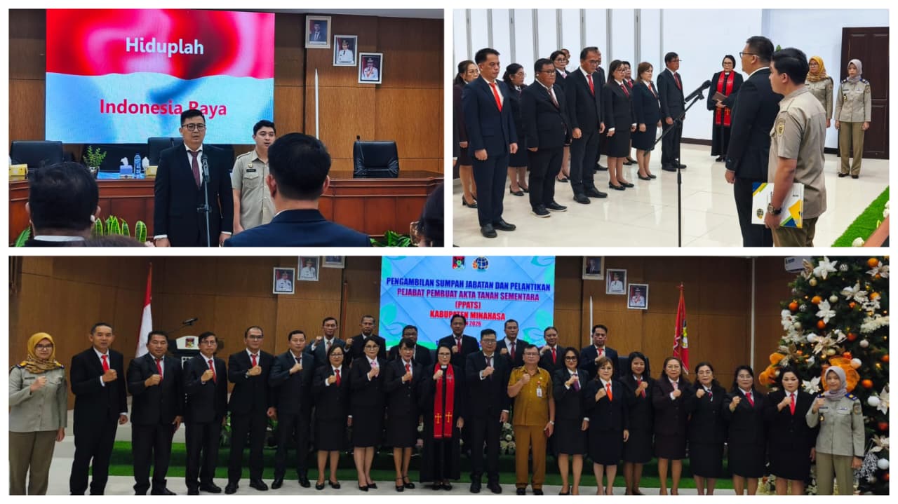Sebanyak 22 Pejabat Pembuat Akte Tanah Sementara (PPATS) dilantik oleh Kepala Kantor Pertanahan BPN Kabupaten Minahasa Richart A.E Runtuwene SH, MH di Tondano, Selasa (13/01/26).