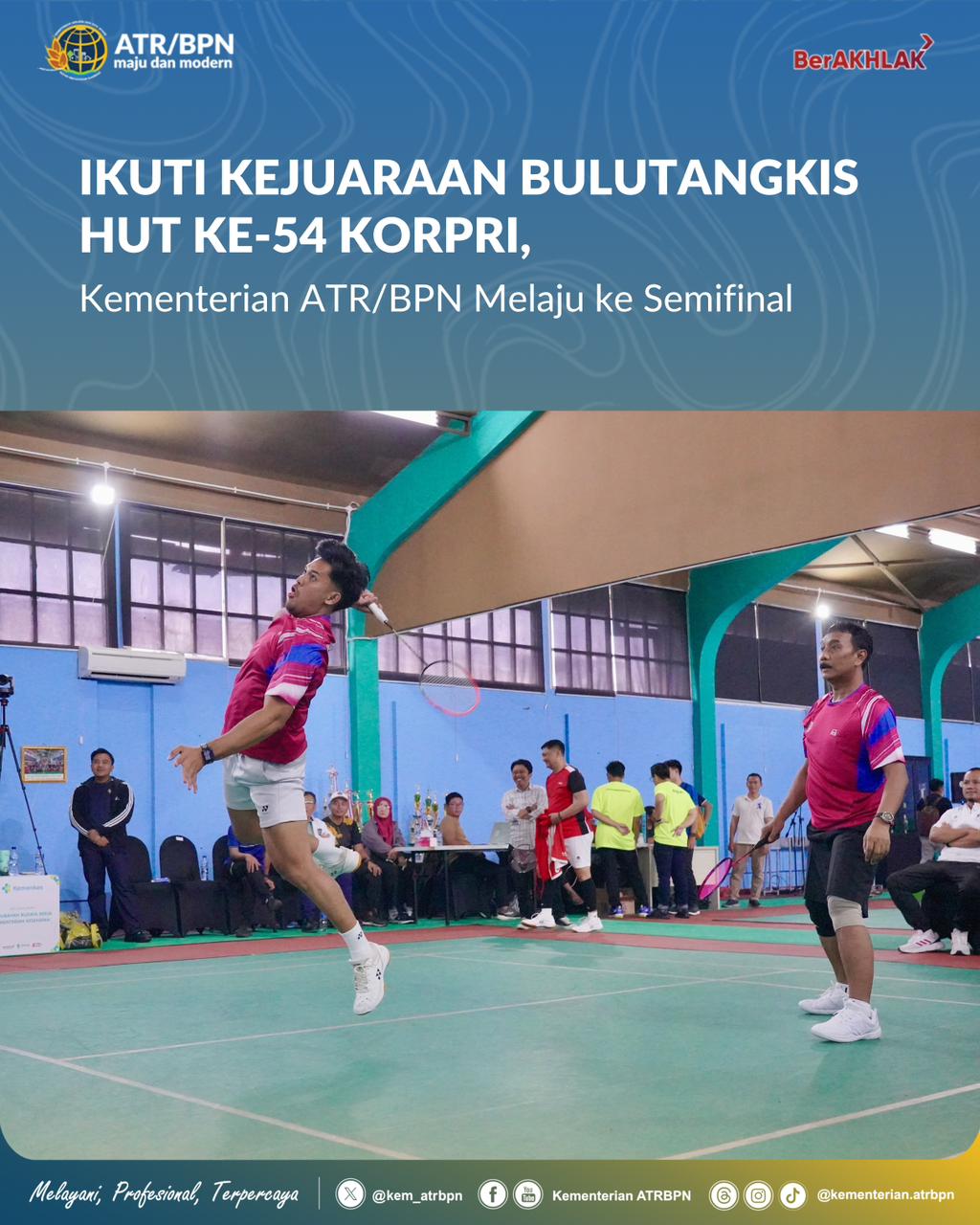 Pada kategori Ganda Putra Eksekutif, Kementerian ATR/BPN berhasil menyingkirkan para pesaingnya di babak 16 besar dan perempat final, sehingga melaju ke babak semifinal yang akan digelar pada Minggu (18/01/2026).
