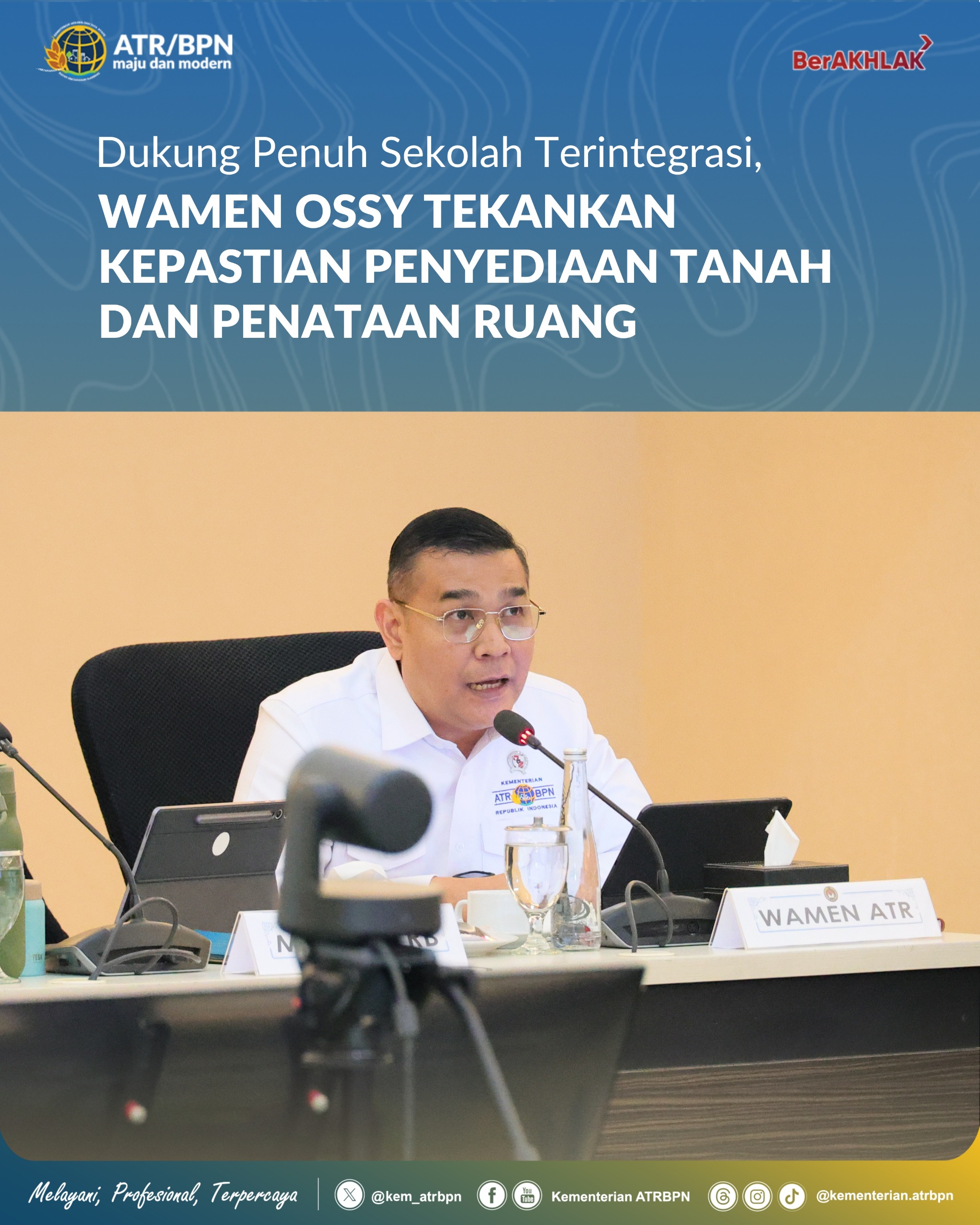 Wamen Ossy juga menegaskan kesiapan Kementerian ATR/BPN untuk terus bersinergi dengan Kemenko PMK dan Kementerian Pendidikan Dasar dan Menengah (Kemendikdasmen) dalam mewujudkan pembangunan Sekolah Terintegrasi.