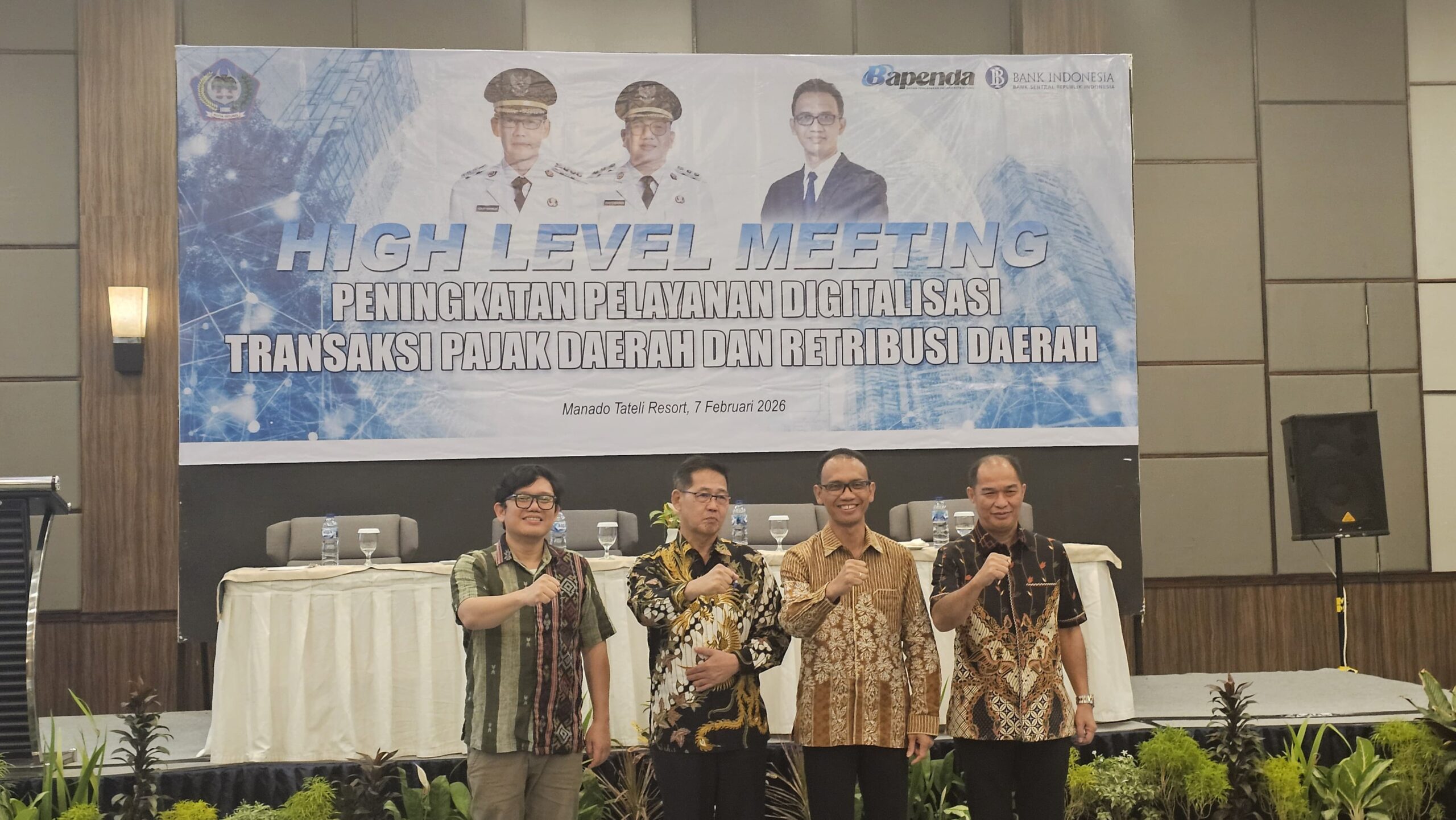 SatuUntukSemua.id – Pemerintah Kota Bitung bersama Kantor Perwakilan Bank Indonesia Provinsi Sulawesi Utara (KPw) BI Sulut melakukan evaluasi kinerja digitalisasi pajak dan retribusi daerah melalui kegiatan High Level Meeting (HLM) Tim Percepatan dan Perluasan Digitalisasi Daerah (TP2DD) Kota Bitung di Tateli Resort, Sabtu (7/2/2026).
