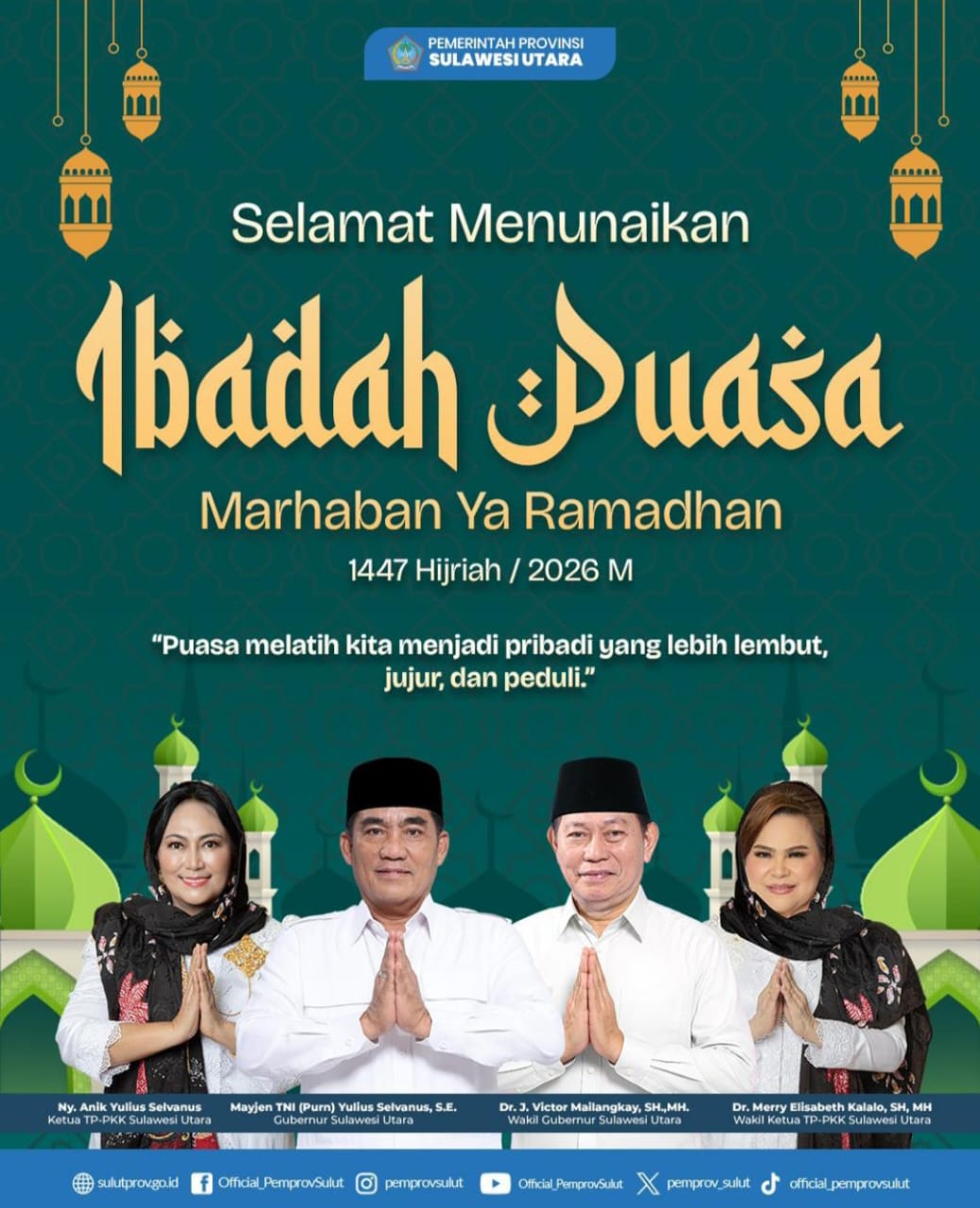 • Pemprov Sulut : Selamat Menunaikan Ibadah Puasa 1447 Hijriah