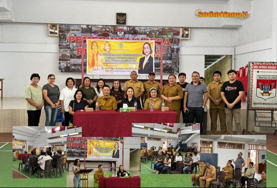 Minsel, SatuUntukSemua.id – Wakil Ketua I DPRD Provinsi Sulawesi Utara, Michaela Elsiana Paruntu (MEP), melakukan kunjungan reses ke Desa Rumoong, Kecamatan Tareran, Kabupaten Minahasa Selatan, Senin (30/03/2026).