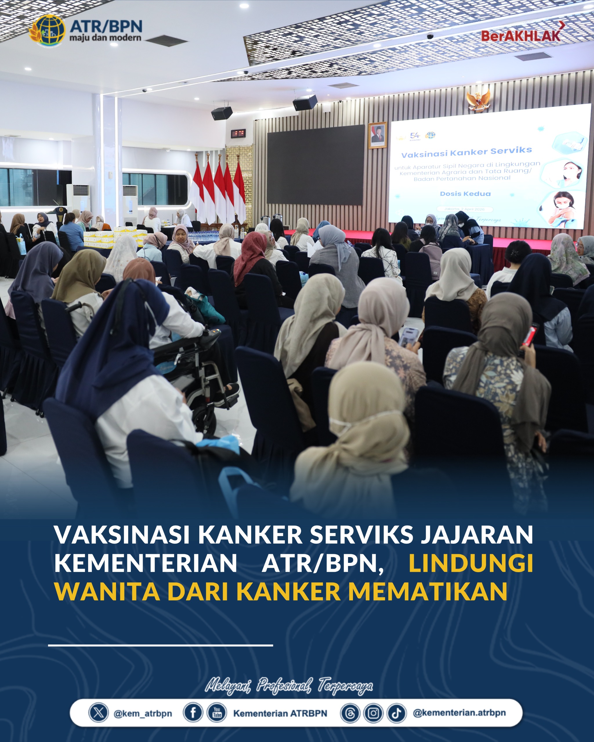 Jakarta, SatuUntukSemua.id – Kanker serviks adalah salah satu penyakit mematikan yang dapat menyerang perempuan. Untuk meningkatkan kesadaran sekaligus melindungi dari risiko terkena penyakit itu, Kementerian Agraria dan Tata Ruang/Badan Pertanahan Nasional (ATR/BPN) membuat program vaksinasi kanker serviks bagi jajarannya sejak awal 2026.