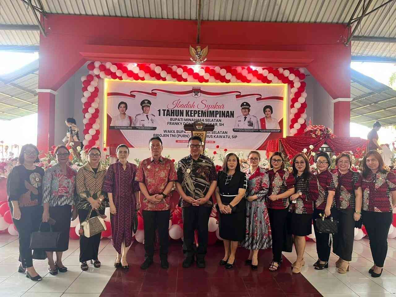 Sebagai wujud ungkapan syukur atas satu tahun kepemimpinan Bupati Minahasa Selatan, Franky Donny Wongkar, S.H., bersama Wakil Bupati Minahasa Selatan, Brigjen TNI (Purn.) Theodorus Kawatu, S.I.P., Pemerintah Kabupaten Minahasa Selatan melaksanakan Ibadah Syukur yang berlangsung di Aula Waleta, Kantor Bupati Minahasa Selatan, pada Jumat, 20 Februari 2026.